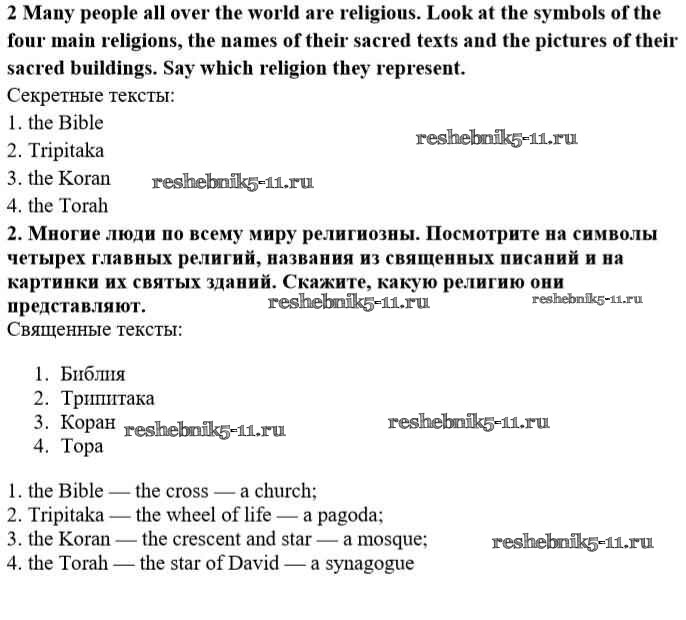Готовая домашняя работа с ответами по Английскому языку за 10 класс Афанасьева, Михеева Учебник Углубленный уровень Просвещение 2014 ФГОС - Unit 2. Man the Beliver 2
