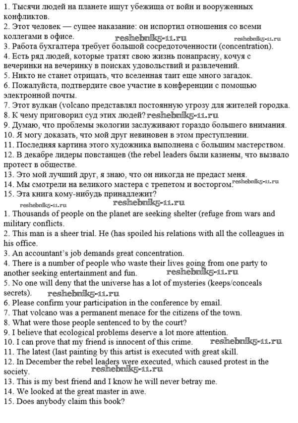 Готовая домашняя работа с ответами по Английскому языку за 10 класс Афанасьева, Михеева Учебник Углубленный уровень Просвещение 2014 ФГОС - Unit 2. Man the Beliver 23