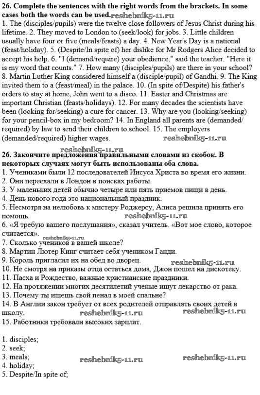 Готовая домашняя работа с ответами по Английскому языку за 10 класс Афанасьева, Михеева Учебник Углубленный уровень Просвещение 2014 ФГОС - Unit 2. Man the Beliver 26