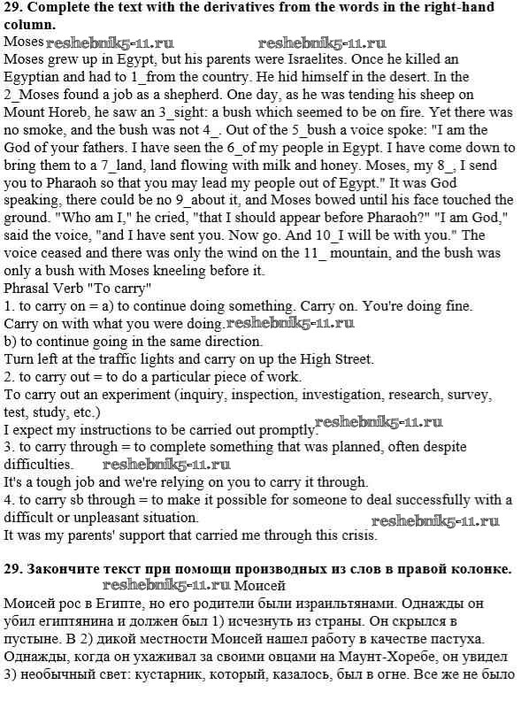 Готовая домашняя работа с ответами по Английскому языку за 10 класс Афанасьева, Михеева Учебник Углубленный уровень Просвещение 2014 ФГОС - Unit 2. Man the Beliver 29