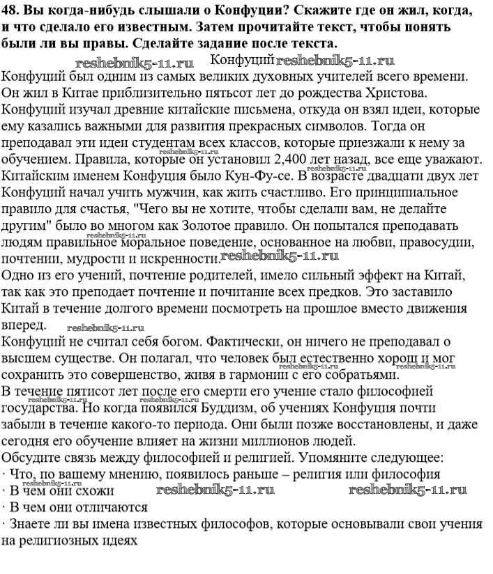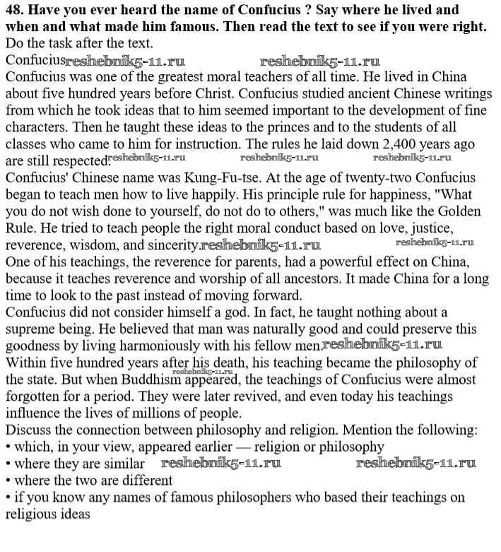 Готовая домашняя работа с ответами по Английскому языку за 10 класс Афанасьева, Михеева Учебник Углубленный уровень Просвещение 2014 ФГОС - Unit 2. Man the Beliver 48