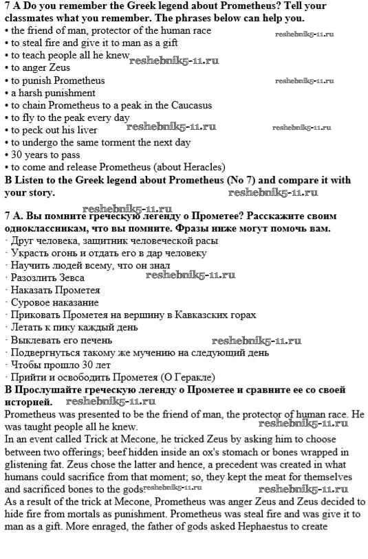 Готовая домашняя работа с ответами по Английскому языку за 10 класс Афанасьева, Михеева Учебник Углубленный уровень Просвещение 2014 ФГОС - Unit 2. Man the Beliver 7