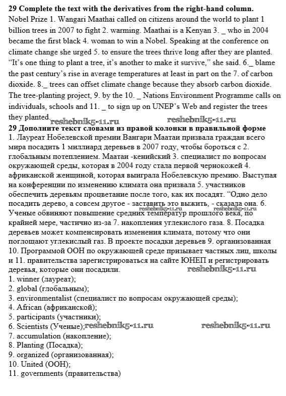 Готовая домашняя работа с ответами по Английскому языку за 10 класс Афанасьева, Михеева Учебник Углубленный уровень Просвещение 2014 ФГОС - Unit 3. Man - the Child of Nature 29