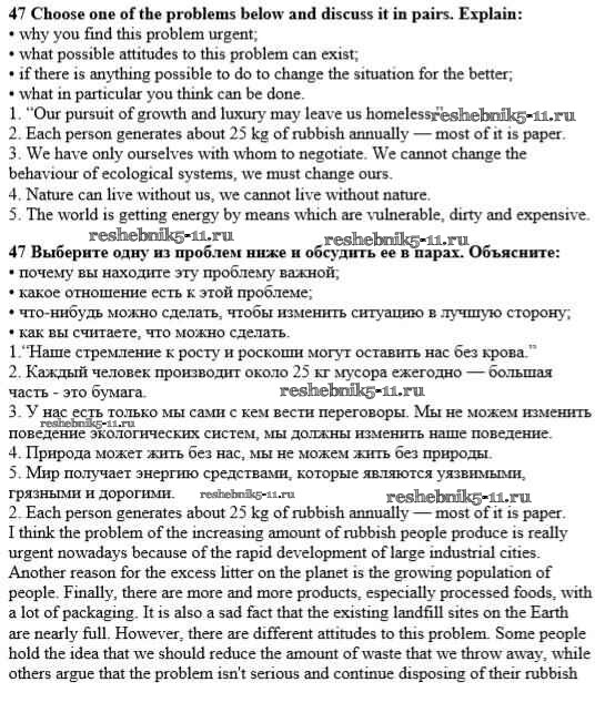 Готовая домашняя работа с ответами по Английскому языку за 10 класс Афанасьева, Михеева Учебник Углубленный уровень Просвещение 2014 ФГОС - Unit 3. Man - the Child of Nature 47