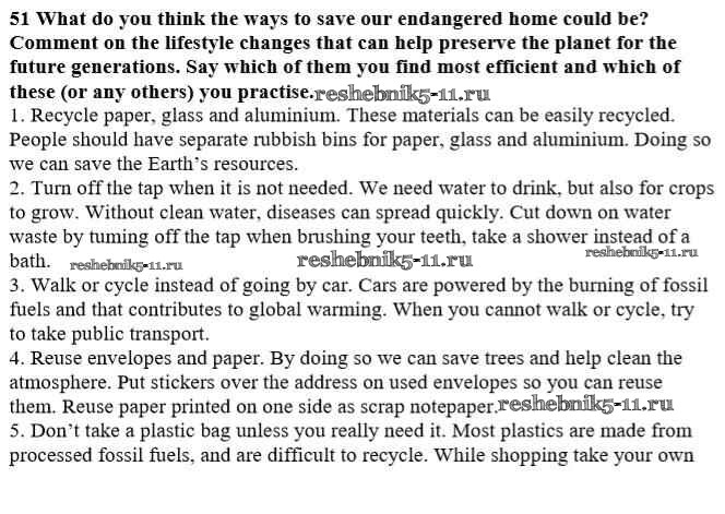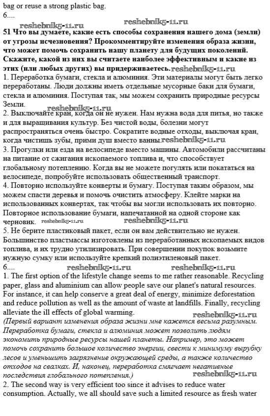 Готовая домашняя работа с ответами по Английскому языку за 10 класс Афанасьева, Михеева Учебник Углубленный уровень Просвещение 2014 ФГОС - Unit 3. Man - the Child of Nature 51