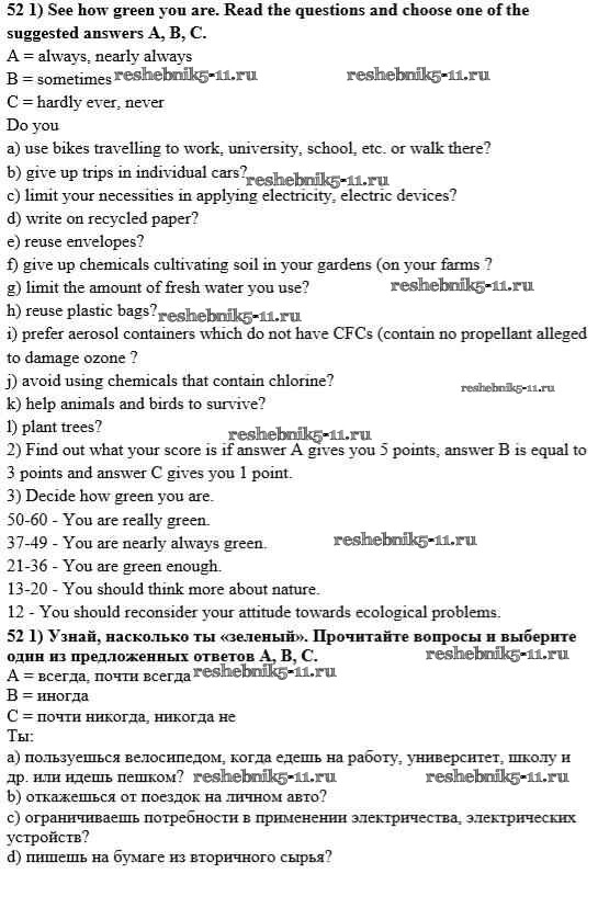 Готовая домашняя работа с ответами по Английскому языку за 10 класс Афанасьева, Михеева Учебник Углубленный уровень Просвещение 2014 ФГОС - Unit 3. Man - the Child of Nature 52