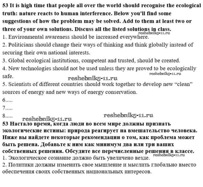 Готовая домашняя работа с ответами по Английскому языку за 10 класс Афанасьева, Михеева Учебник Углубленный уровень Просвещение 2014 ФГОС - Unit 3. Man - the Child of Nature 53