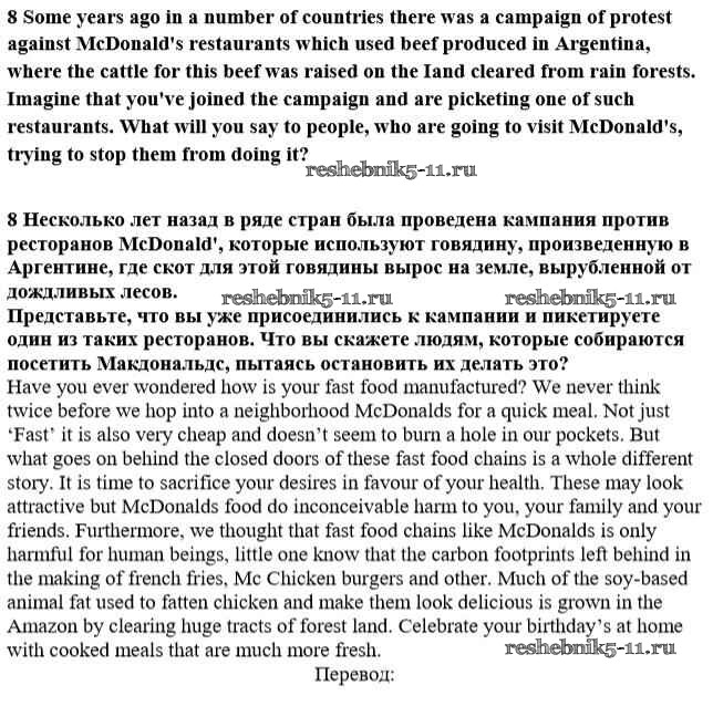 Готовая домашняя работа с ответами по Английскому языку за 10 класс Афанасьева, Михеева Учебник Углубленный уровень Просвещение 2014 ФГОС - Unit 3. Man - the Child of Nature 8