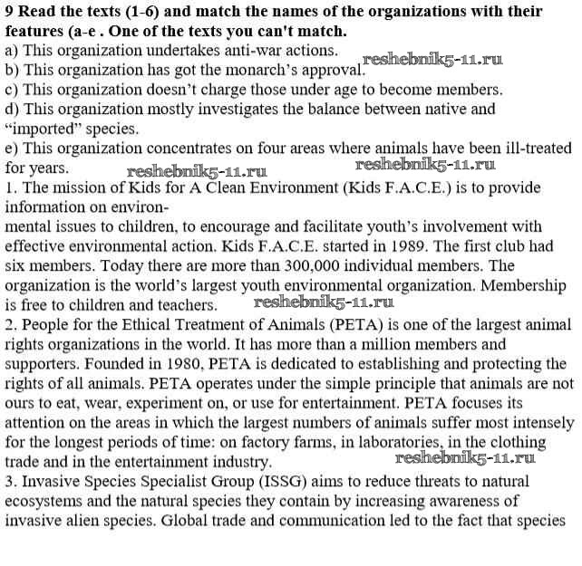 Готовая домашняя работа с ответами по Английскому языку за 10 класс Афанасьева, Михеева Учебник Углубленный уровень Просвещение 2014 ФГОС - Unit 3. Man - the Child of Nature 9