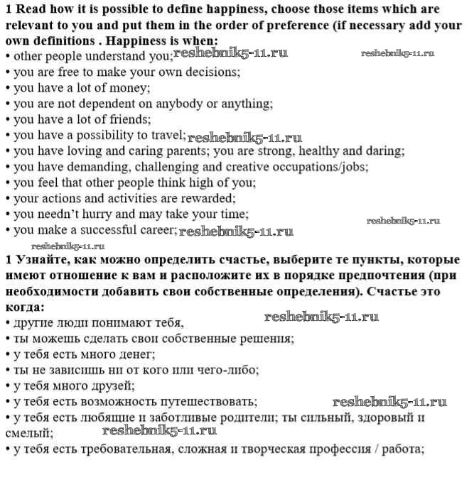 Готовая домашняя работа с ответами по Английскому языку за 10 класс Афанасьева, Михеева Учебник Углубленный уровень Просвещение 2014 ФГОС - Unit 4. Man - the Speeker of Happiness 1