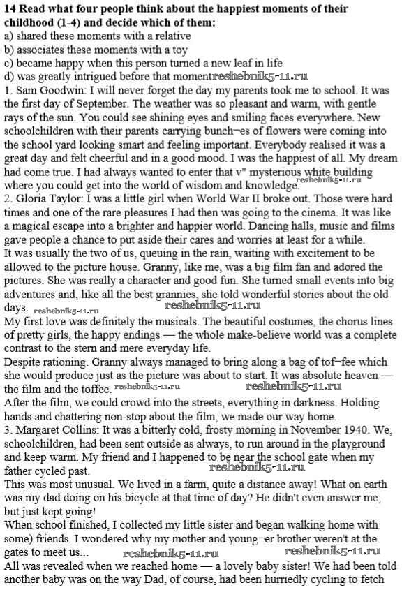 Готовая домашняя работа с ответами по Английскому языку за 10 класс Афанасьева, Михеева Учебник Углубленный уровень Просвещение 2014 ФГОС - Unit 4. Man - the Speeker of Happiness 14