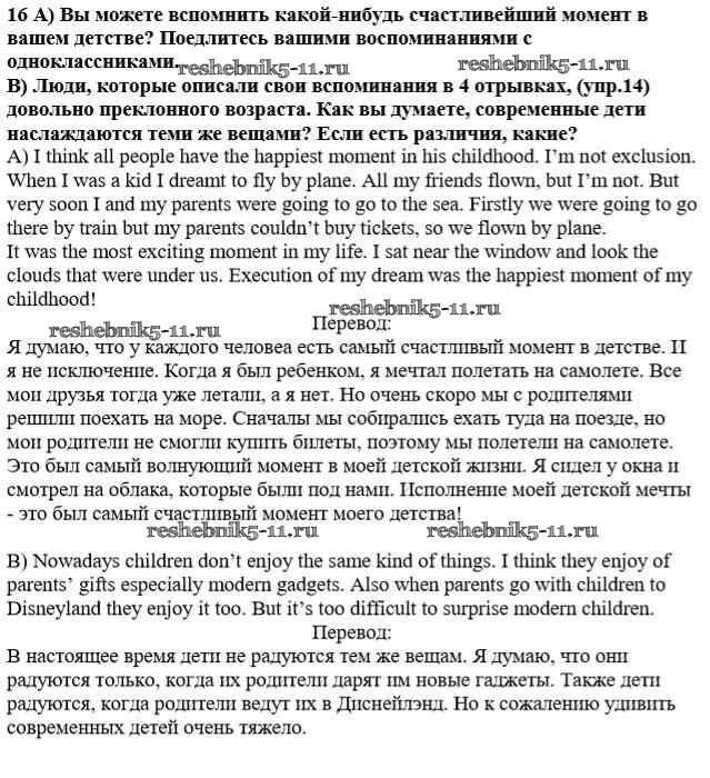 Готовая домашняя работа с ответами по Английскому языку за 10 класс Афанасьева, Михеева Учебник Углубленный уровень Просвещение 2014 ФГОС - Unit 4. Man - the Speeker of Happiness 16