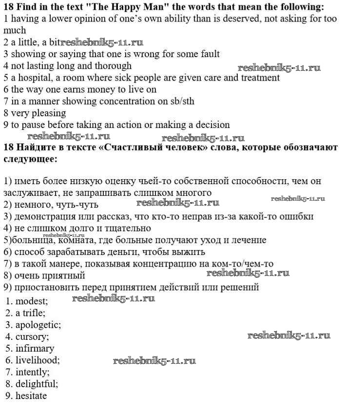 Готовая домашняя работа с ответами по Английскому языку за 10 класс Афанасьева, Михеева Учебник Углубленный уровень Просвещение 2014 ФГОС - Unit 4. Man - the Speeker of Happiness 18