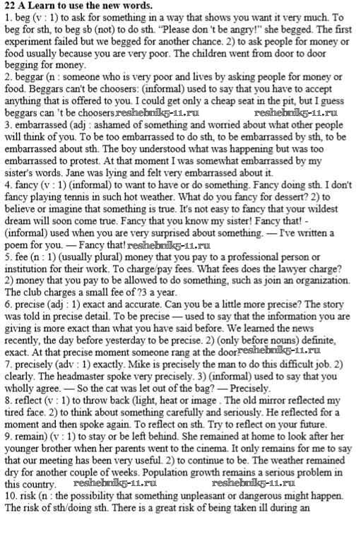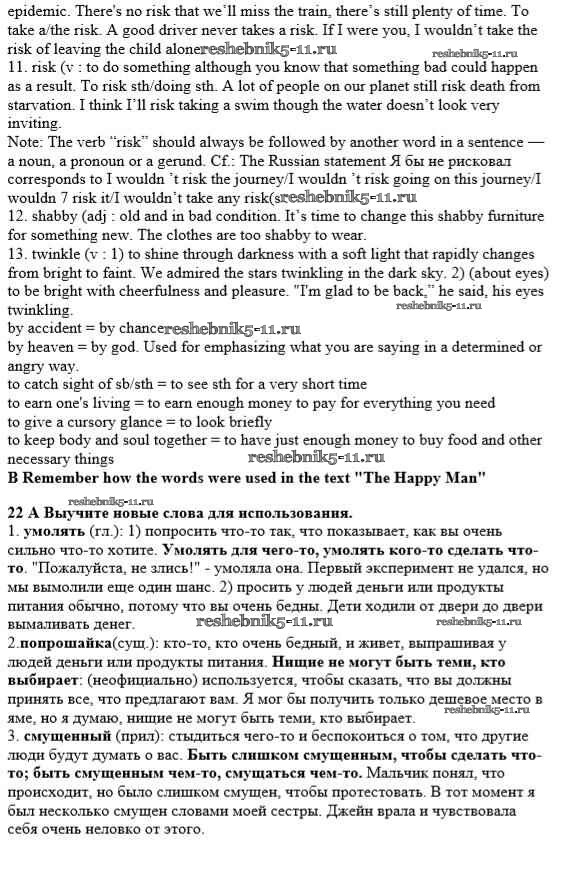 Готовая домашняя работа с ответами по Английскому языку за 10 класс Афанасьева, Михеева Учебник Углубленный уровень Просвещение 2014 ФГОС - Unit 4. Man - the Speeker of Happiness 22