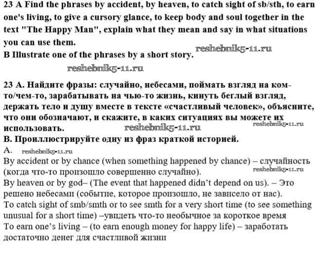 Готовая домашняя работа с ответами по Английскому языку за 10 класс Афанасьева, Михеева Учебник Углубленный уровень Просвещение 2014 ФГОС - Unit 4. Man - the Speeker of Happiness 23