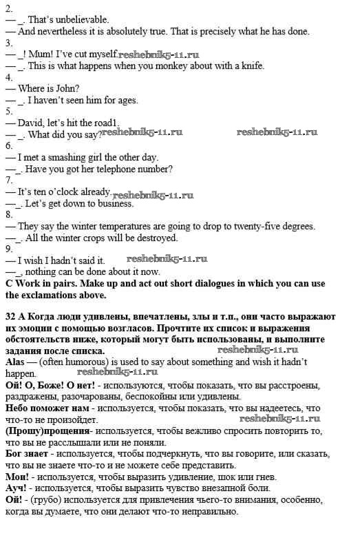 Готовая домашняя работа с ответами по Английскому языку за 10 класс Афанасьева, Михеева Учебник Углубленный уровень Просвещение 2014 ФГОС - Unit 4. Man - the Speeker of Happiness 32