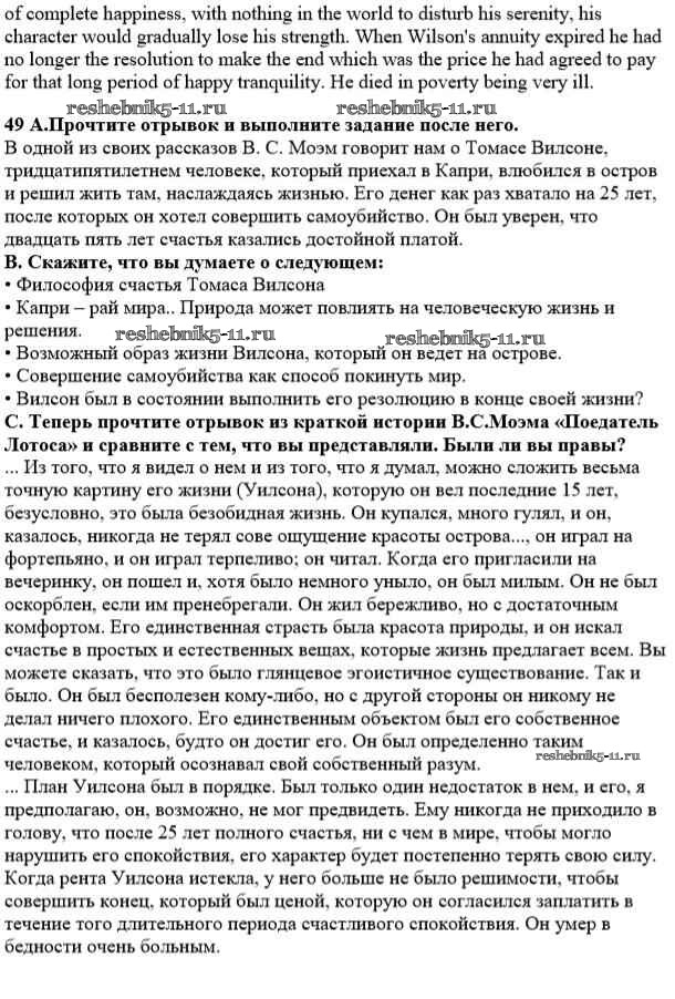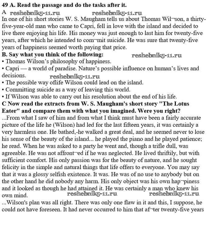Готовая домашняя работа с ответами по Английскому языку за 10 класс Афанасьева, Михеева Учебник Углубленный уровень Просвещение 2014 ФГОС - Unit 4. Man - the Speeker of Happiness 49