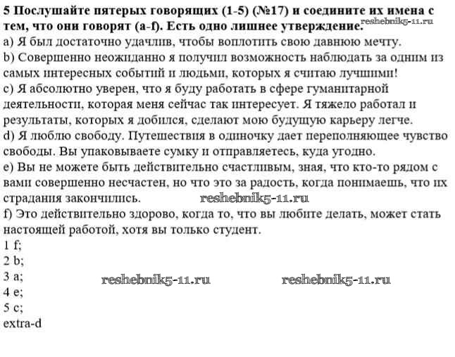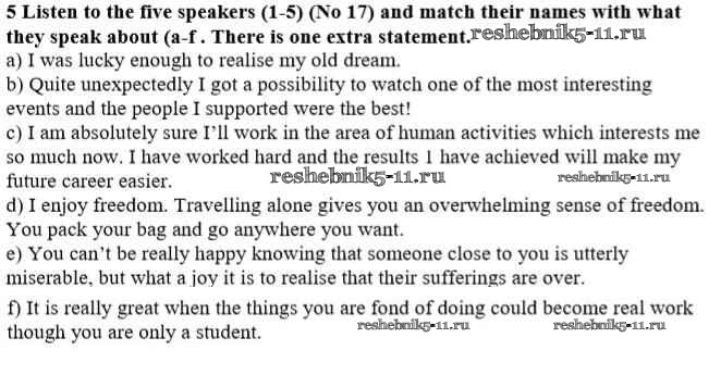 Готовая домашняя работа с ответами по Английскому языку за 10 класс Афанасьева, Михеева Учебник Углубленный уровень Просвещение 2014 ФГОС - Unit 4. Man - the Speeker of Happiness 5