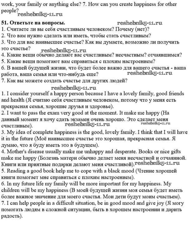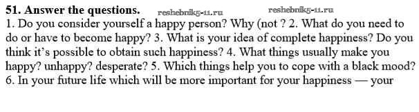 Готовая домашняя работа с ответами по Английскому языку за 10 класс Афанасьева, Михеева Учебник Углубленный уровень Просвещение 2014 ФГОС - Unit 4. Man - the Speeker of Happiness 51