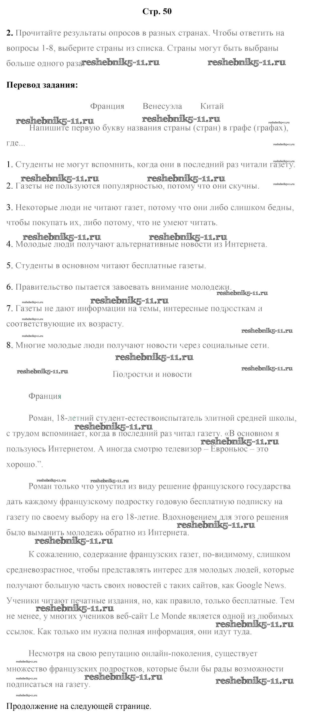 Готовая домашняя работа с ответами по Английскому языку за 10 класс Юхнель, Наумова, Демченко Рабочая тетрадь Часть 1, 2 Аверсэв 2020 ФГОС - Часть 2. Страницы 50