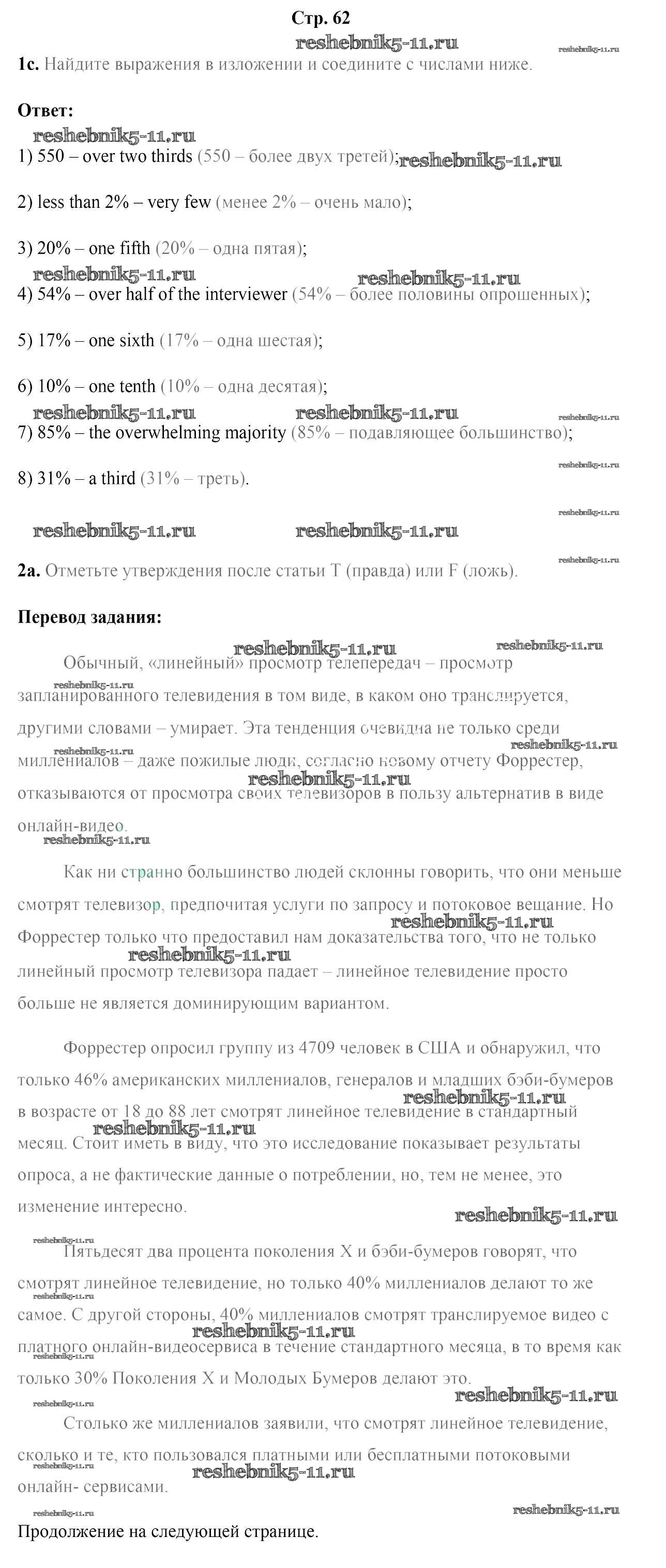 Готовая домашняя работа с ответами по Английскому языку за 10 класс Юхнель, Наумова, Демченко Рабочая тетрадь Часть 1, 2 Аверсэв 2020 ФГОС - Часть 2. Страницы 62