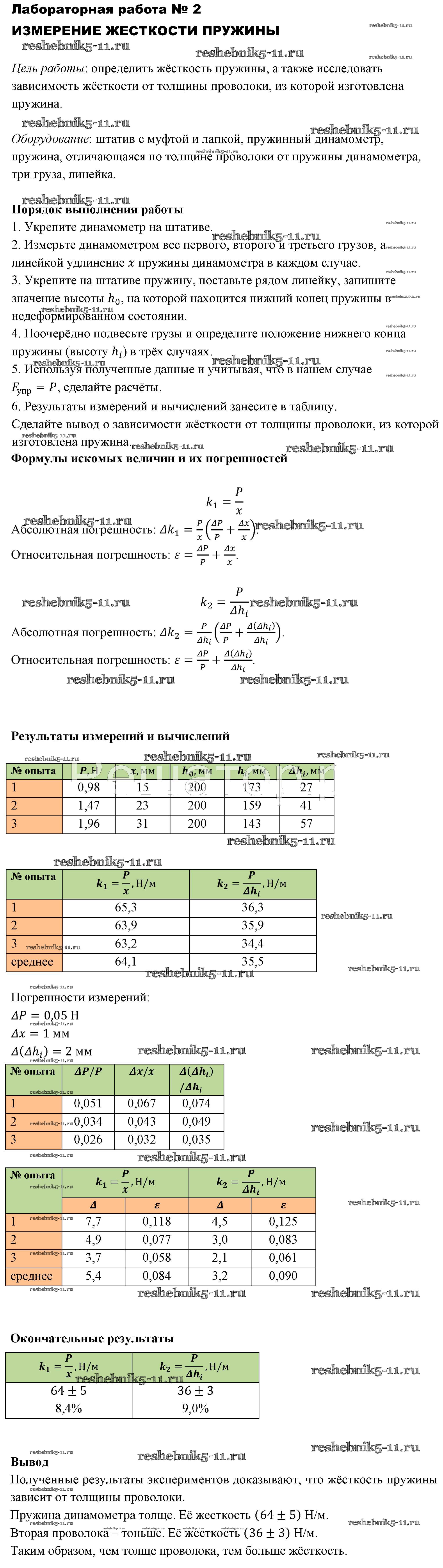 Готовая домашняя работа с ответами по Физике за 10 класс Мякишев, Буховцев, Сотский Учебник Базовый уровень Просвещение 2014 - Лабораторные работы 2