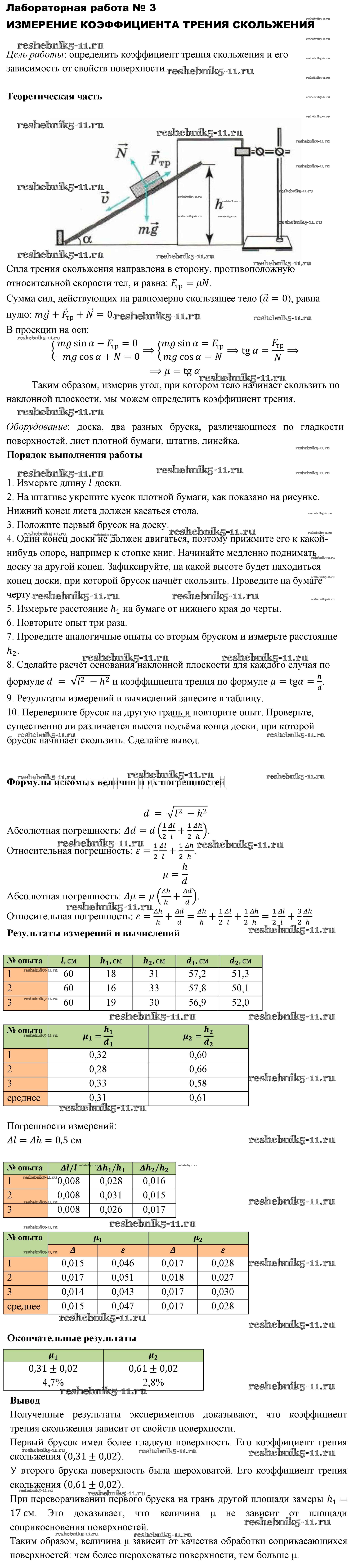 Готовая домашняя работа с ответами по Физике за 10 класс Мякишев, Буховцев, Сотский Учебник Базовый уровень Просвещение 2014 - Лабораторные работы 3