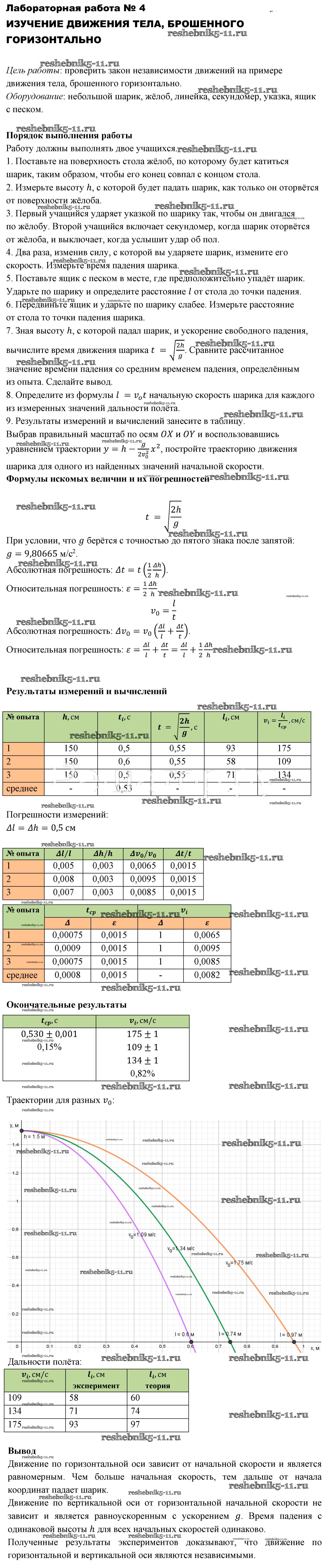 Готовая домашняя работа с ответами по Физике за 10 класс Мякишев, Буховцев, Сотский Учебник Базовый уровень Просвещение 2014 - Лабораторные работы 4