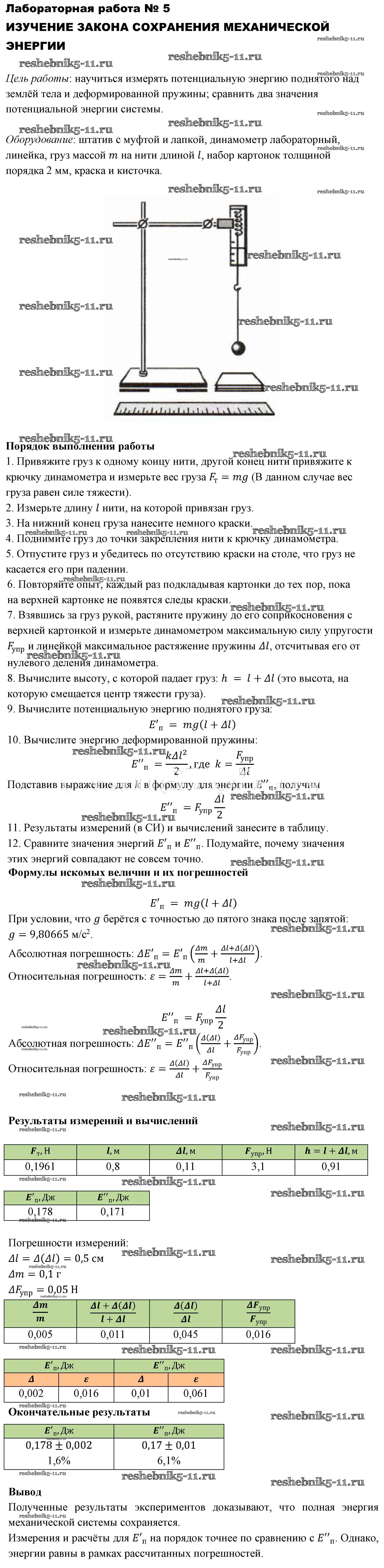 Готовая домашняя работа с ответами по Физике за 10 класс Мякишев, Буховцев, Сотский Учебник Базовый уровень Просвещение 2014 - Лабораторные работы 5
