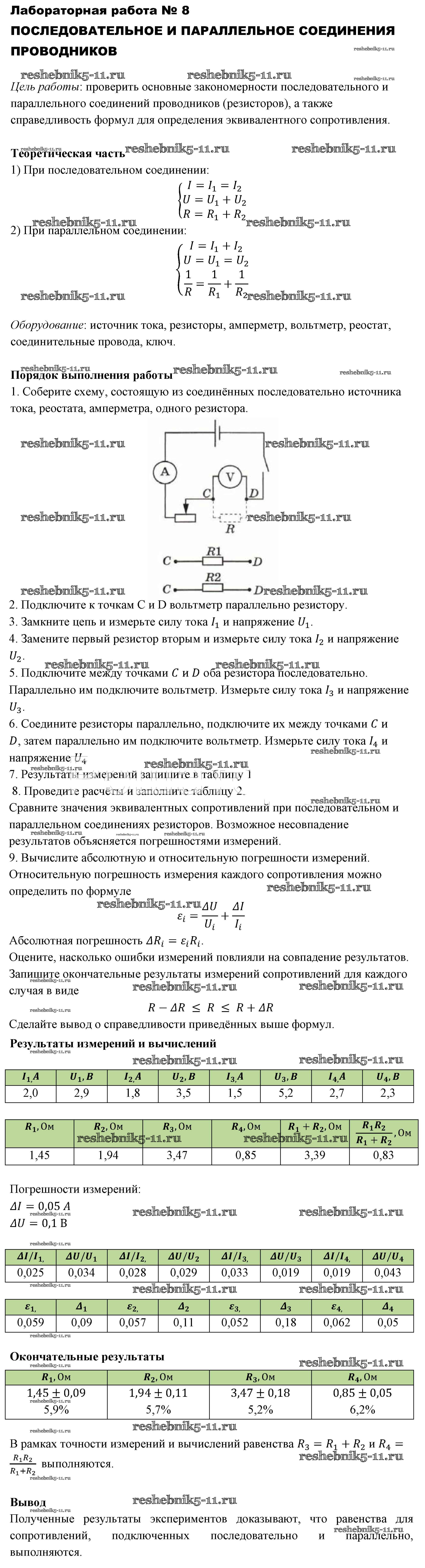 Готовая домашняя работа с ответами по Физике за 10 класс Мякишев, Буховцев, Сотский Учебник Базовый уровень Просвещение 2014 - Лабораторные работы 8