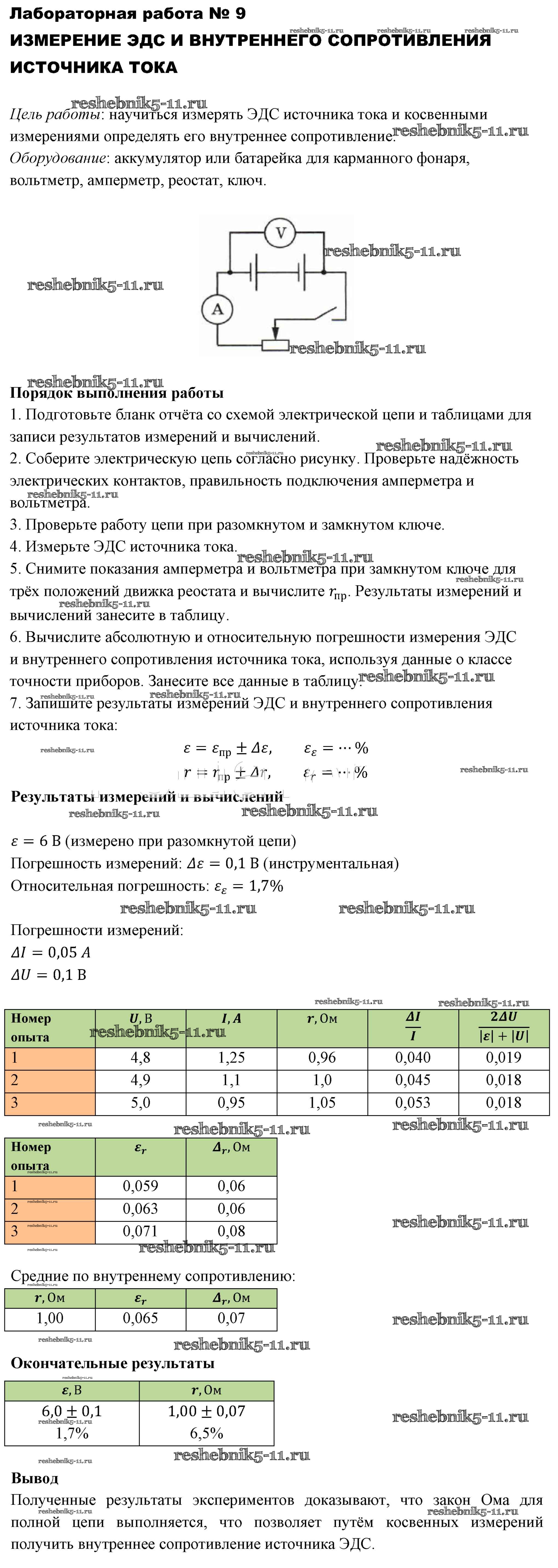 Готовая домашняя работа с ответами по Физике за 10 класс Мякишев, Буховцев, Сотский Учебник Базовый уровень Просвещение 2014 - Лабораторные работы 9