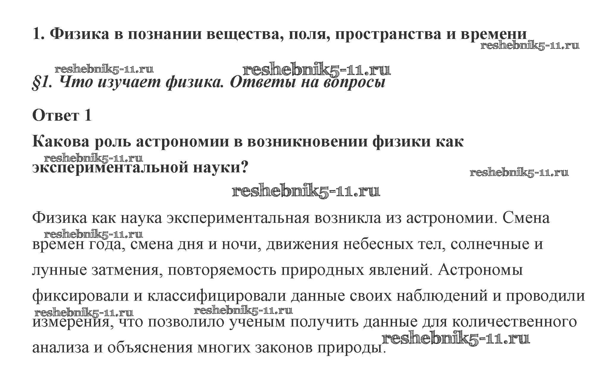 Готовая домашняя работа с ответами по Физике за 10 класс Касьянов Учебник Дрофа 2018 ФГОС - 1. Что изучает физика 1