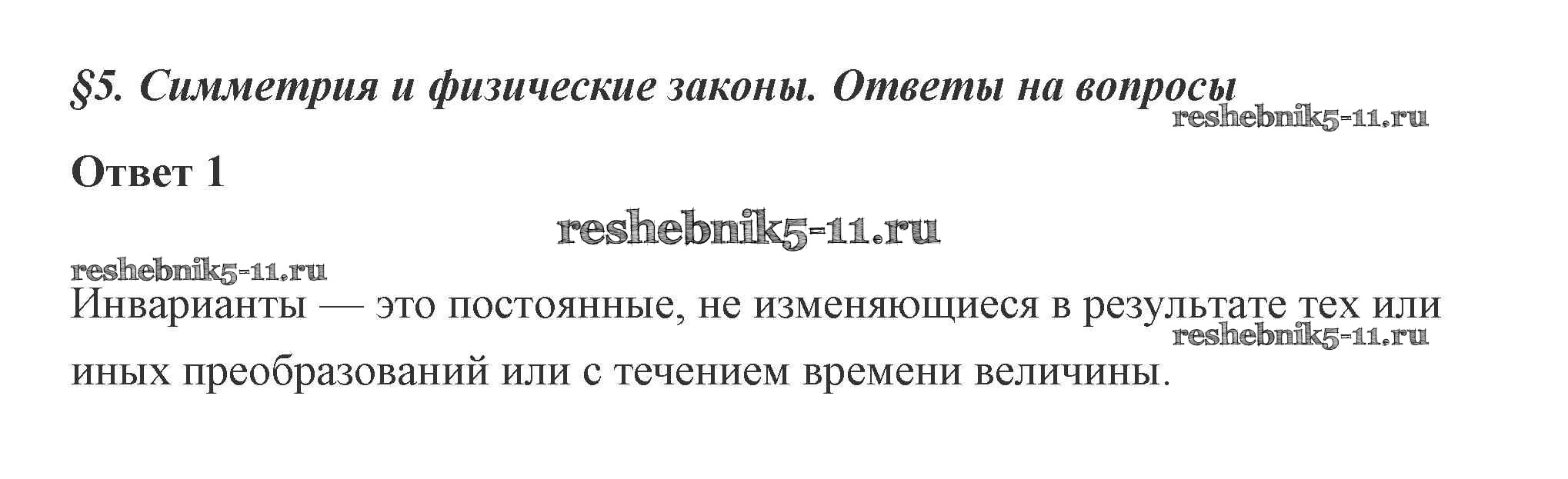 Готовая домашняя работа с ответами по Физике за 10 класс Касьянов Учебник Дрофа 2018 ФГОС - 5. Симметрия и физические законы 1