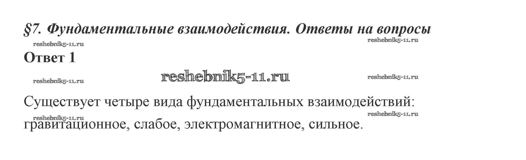 Готовая домашняя работа с ответами по Физике за 10 класс Касьянов Учебник Дрофа 2018 ФГОС - 7. Фундаментальные взаимодействия 1