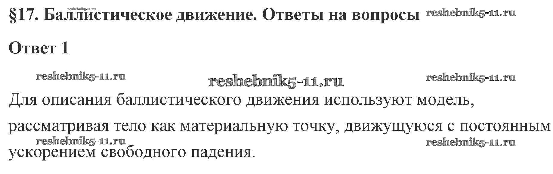 Готовая домашняя работа с ответами по Физике за 10 класс Касьянов Учебник Дрофа 2018 ФГОС - 17. Баллистическое движение 1