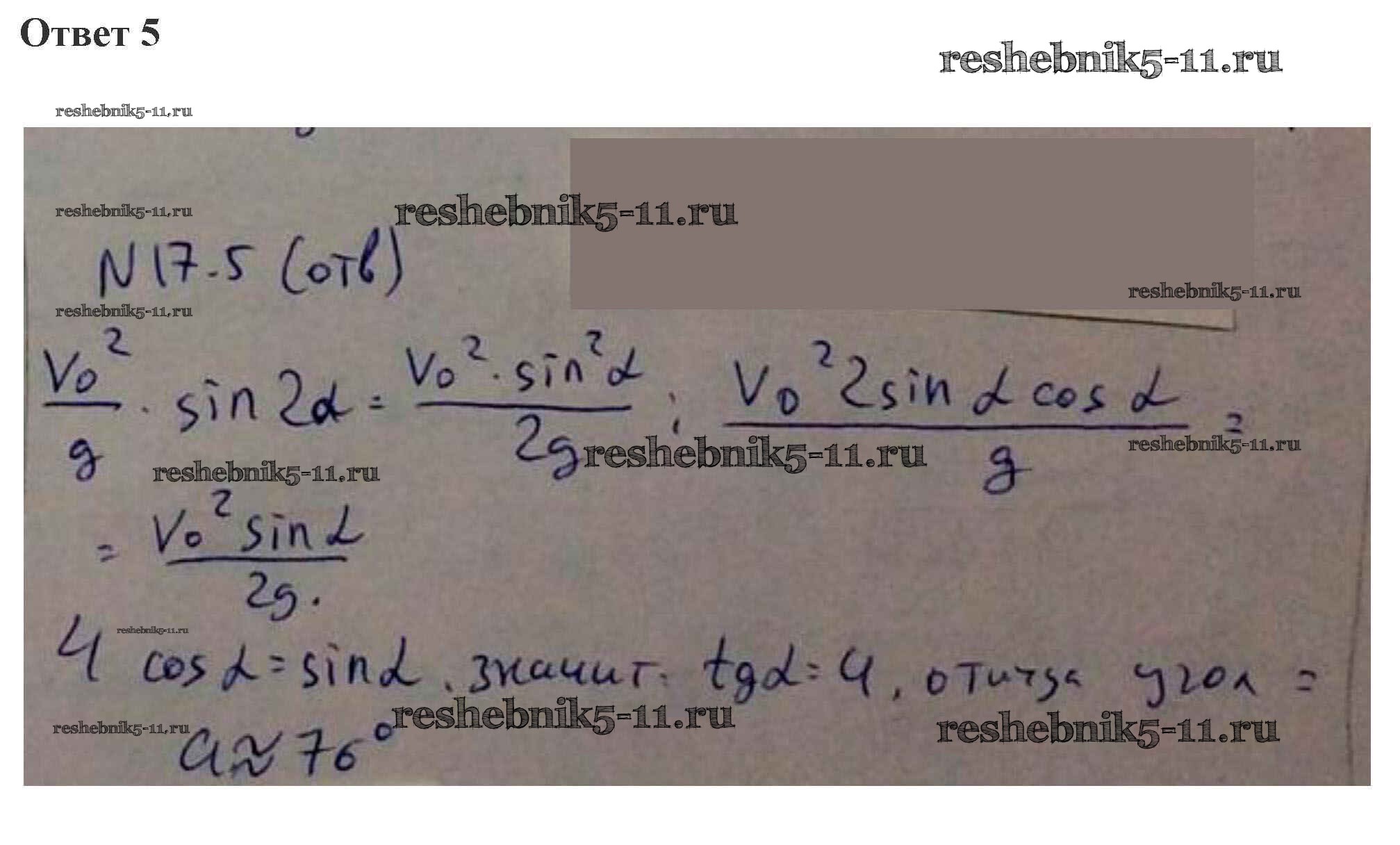 Готовая домашняя работа с ответами по Физике за 10 класс Касьянов Учебник Дрофа 2018 ФГОС - 17. Баллистическое движение 5