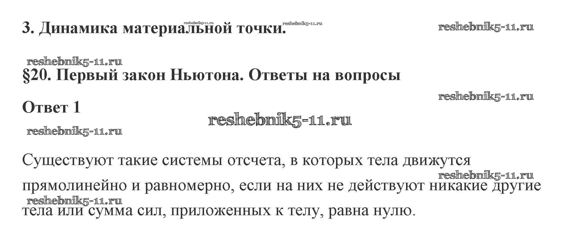 Готовая домашняя работа с ответами по Физике за 10 класс Касьянов Учебник Дрофа 2018 ФГОС - 20. Первый закон Ньютона 1