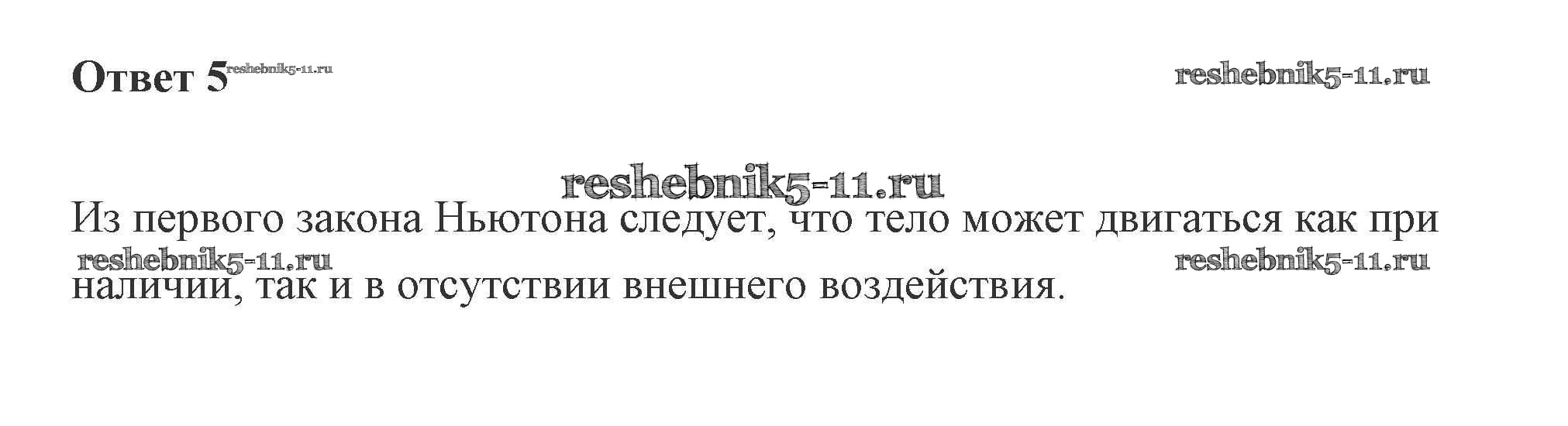 Готовая домашняя работа с ответами по Физике за 10 класс Касьянов Учебник Дрофа 2018 ФГОС - 20. Первый закон Ньютона 5