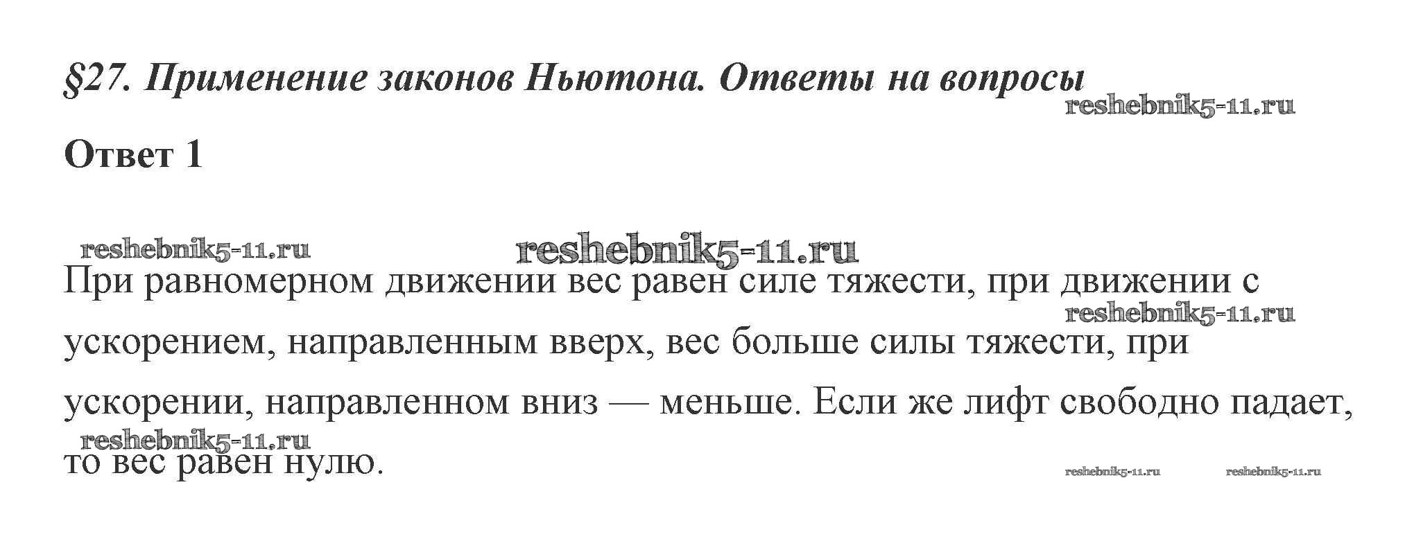 Готовая домашняя работа с ответами по Физике за 10 класс Касьянов Учебник Дрофа 2018 ФГОС - 27. Применение законов Ньютона 1