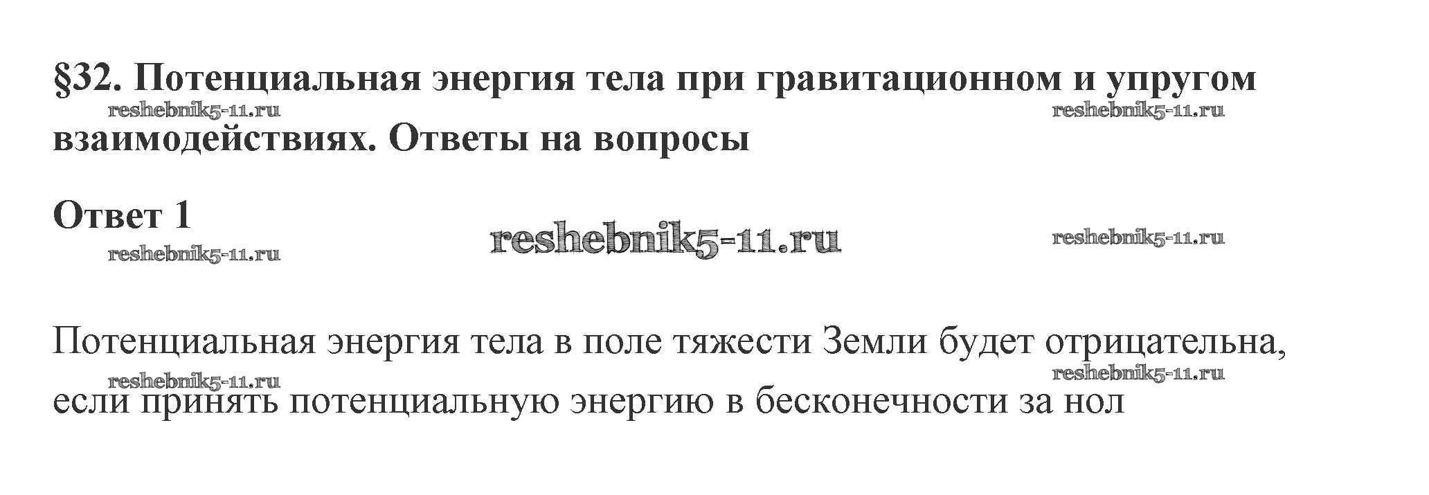 Готовая домашняя работа с ответами по Физике за 10 класс Касьянов Учебник Дрофа 2018 ФГОС - 32. Потенциальная энергия тела при гравитационном и упругом взаимодействиях 1