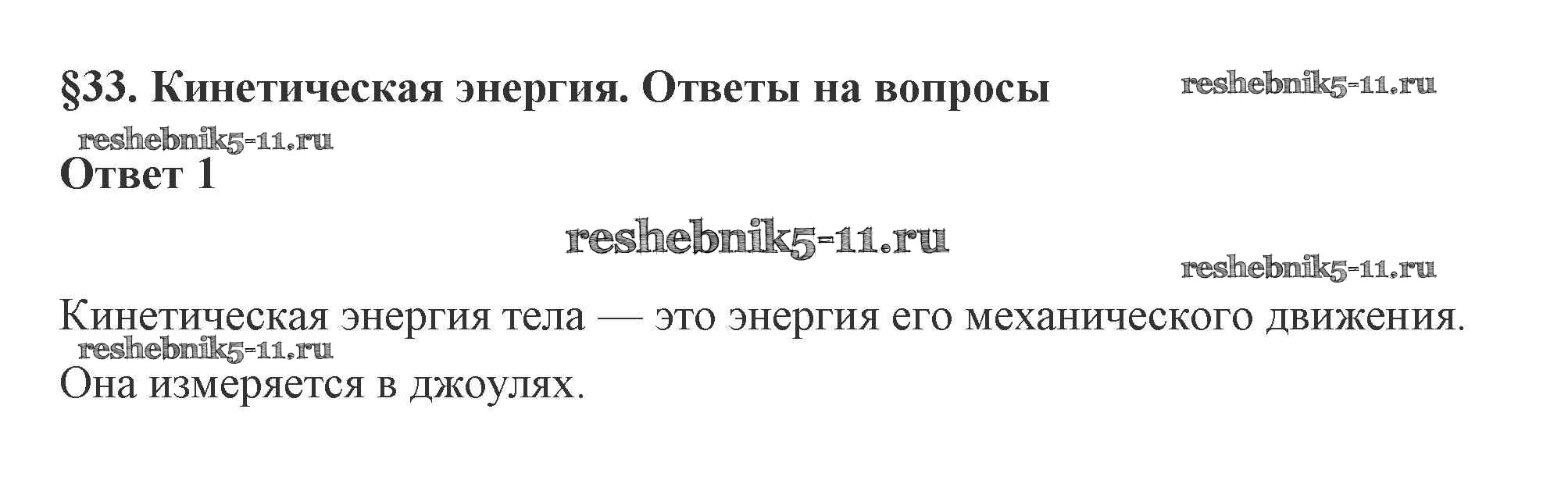 Готовая домашняя работа с ответами по Физике за 10 класс Касьянов Учебник Дрофа 2018 ФГОС - 33. Кинетическая энергия 1