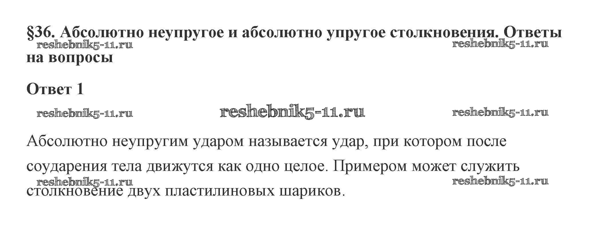 Готовая домашняя работа с ответами по Физике за 10 класс Касьянов Учебник Дрофа 2018 ФГОС - 36. Абсолютно неупругое и абсолютно упругое столкновения 1