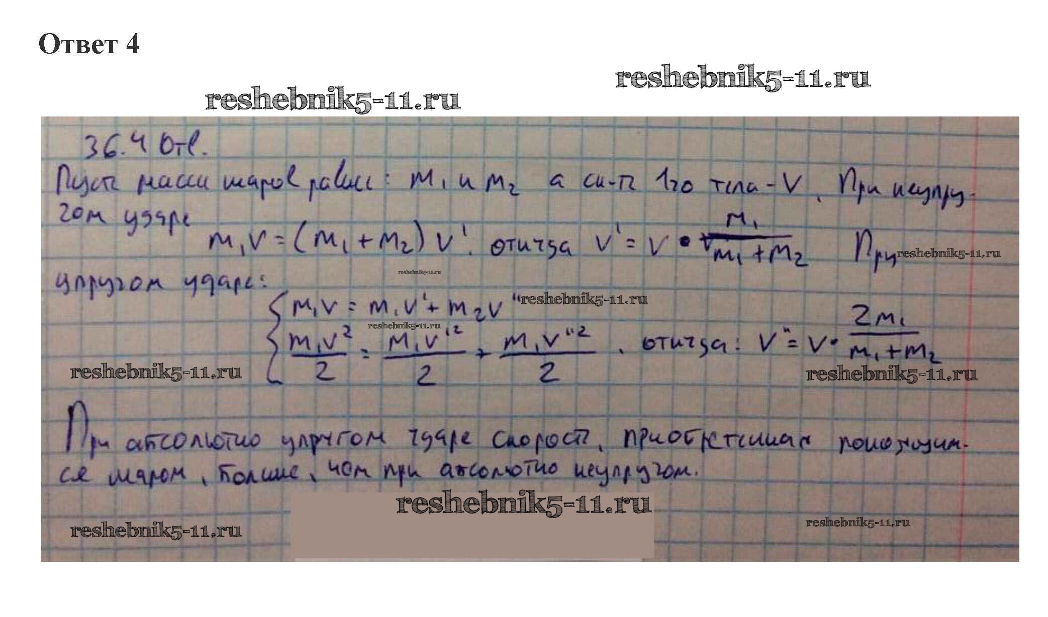 Готовая домашняя работа с ответами по Физике за 10 класс Касьянов Учебник Дрофа 2018 ФГОС - 36. Абсолютно неупругое и абсолютно упругое столкновения 4