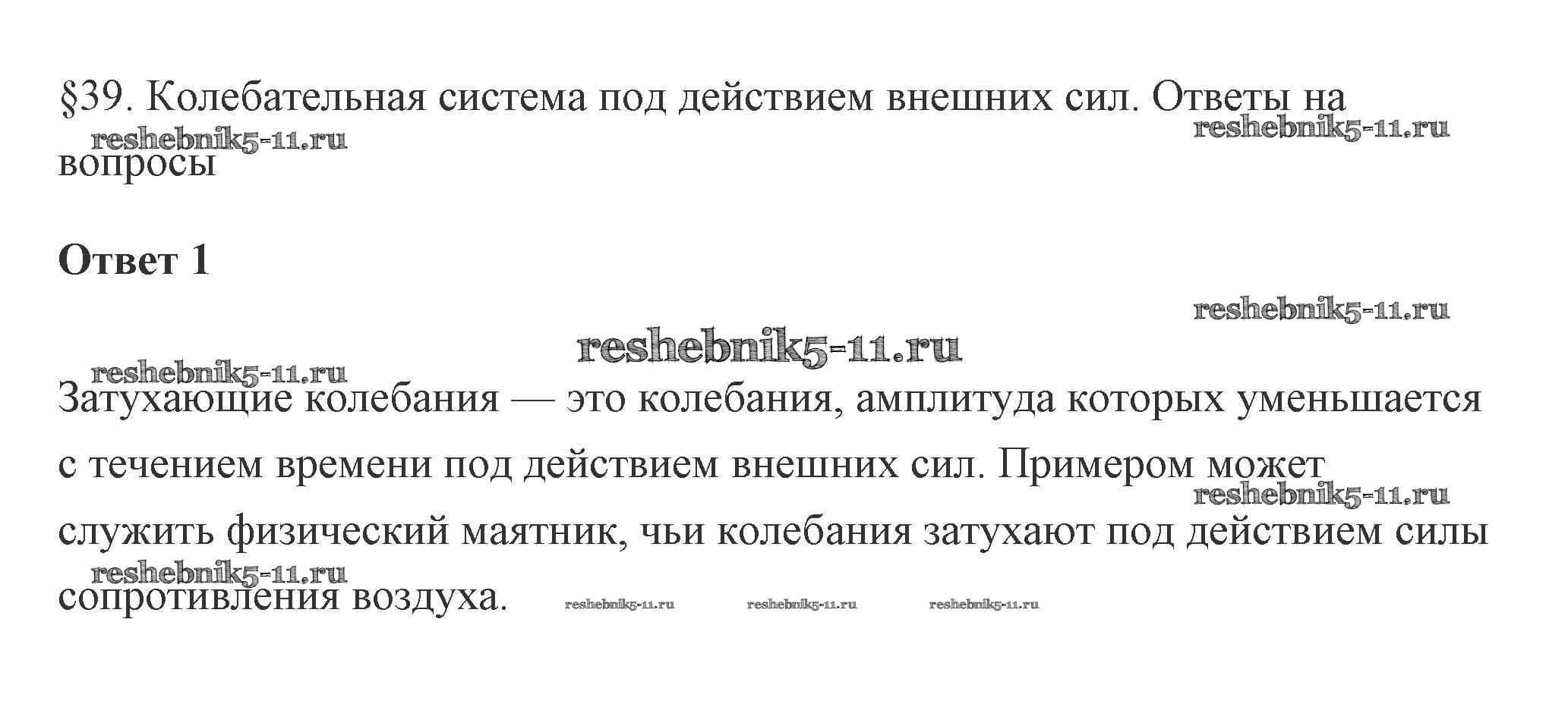 Готовая домашняя работа с ответами по Физике за 10 класс Касьянов Учебник Дрофа 2018 ФГОС - 39. Колебательная система под действием внешних сил 1