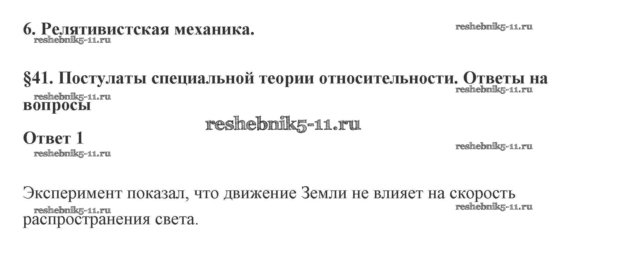 Готовая домашняя работа с ответами по Физике за 10 класс Касьянов Учебник Дрофа 2018 ФГОС - 41. Постулаты специальной теории относительности 1