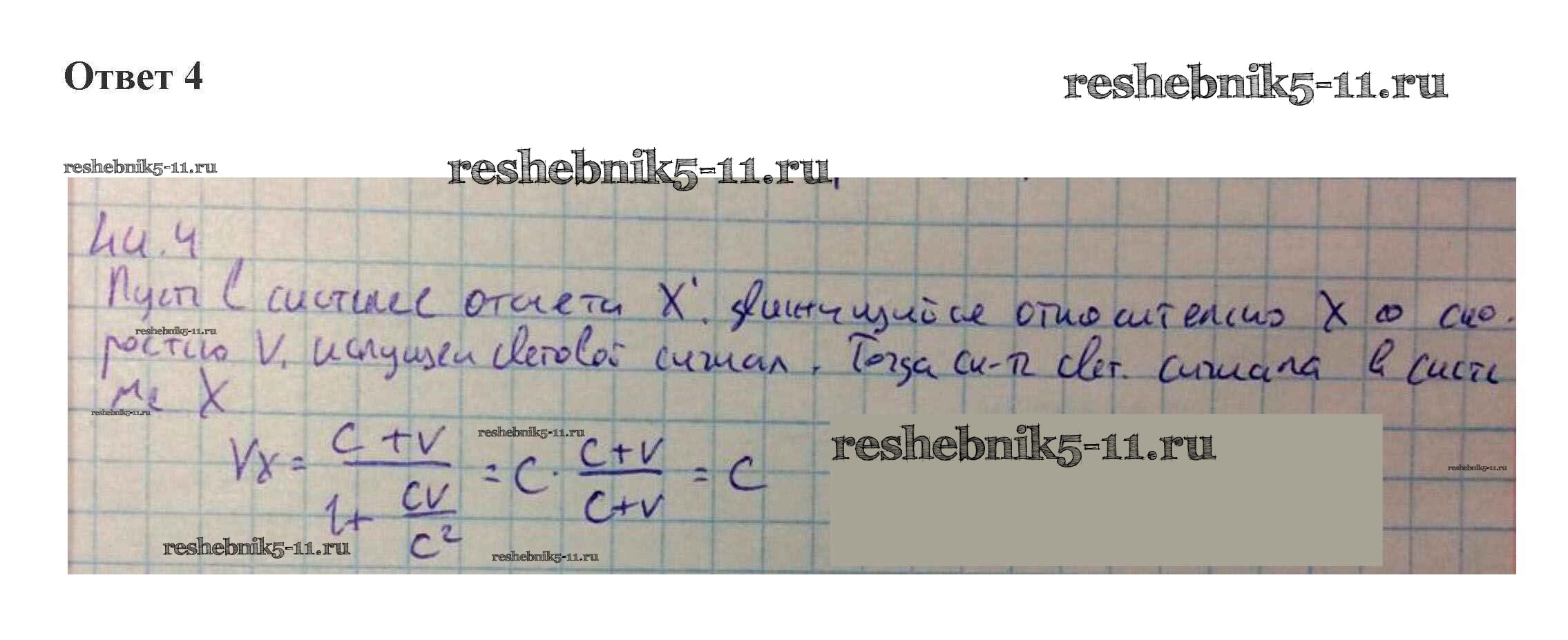 Готовая домашняя работа с ответами по Физике за 10 класс Касьянов Учебник Дрофа 2018 ФГОС - 44. Релятивистский закон сложения скоростей 4