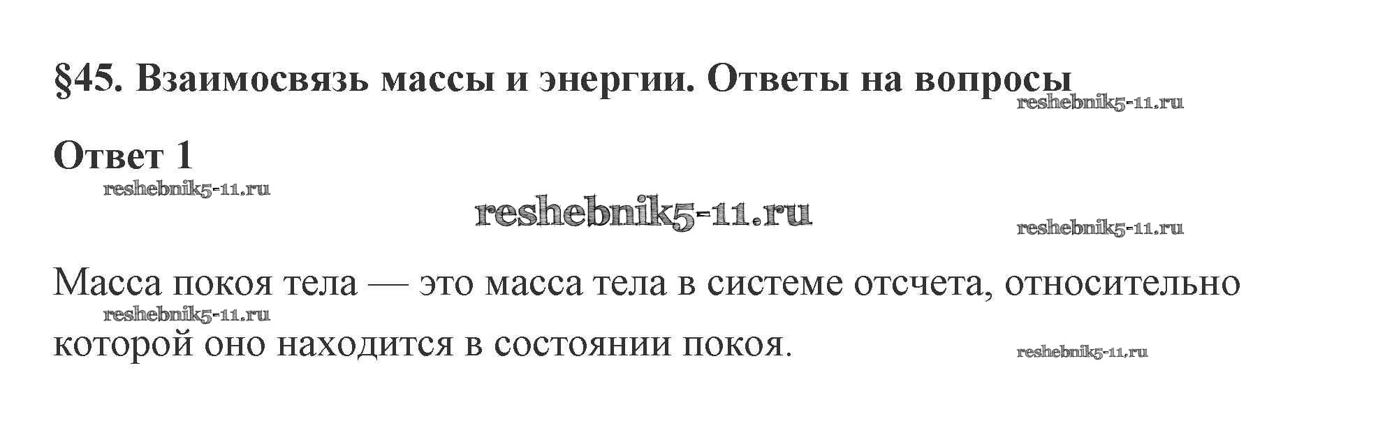Готовая домашняя работа с ответами по Физике за 10 класс Касьянов Учебник Дрофа 2018 ФГОС - 45. Взаимосвязь массы и энергии 1