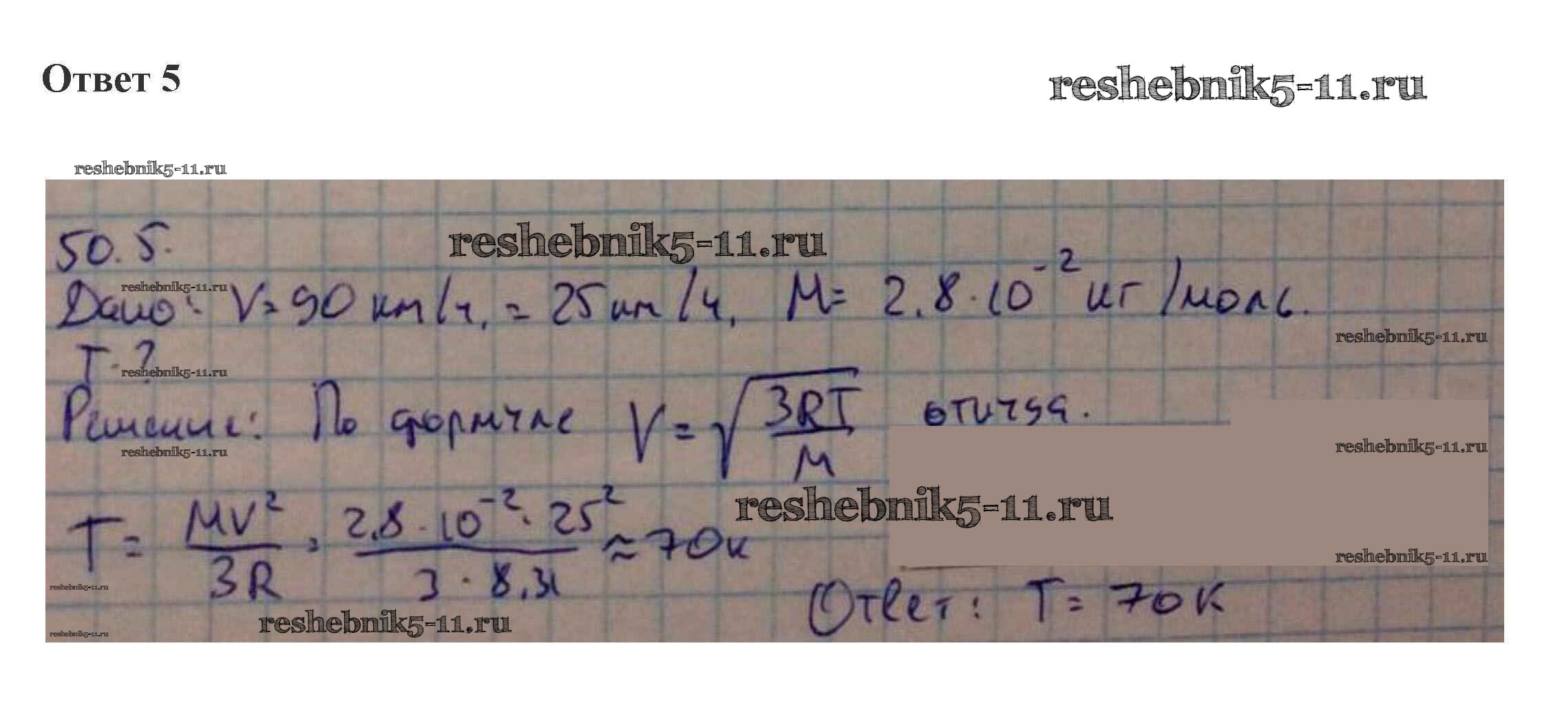 Готовая домашняя работа с ответами по Физике за 10 класс Касьянов Учебник Дрофа 2018 ФГОС - 50. Температура 5