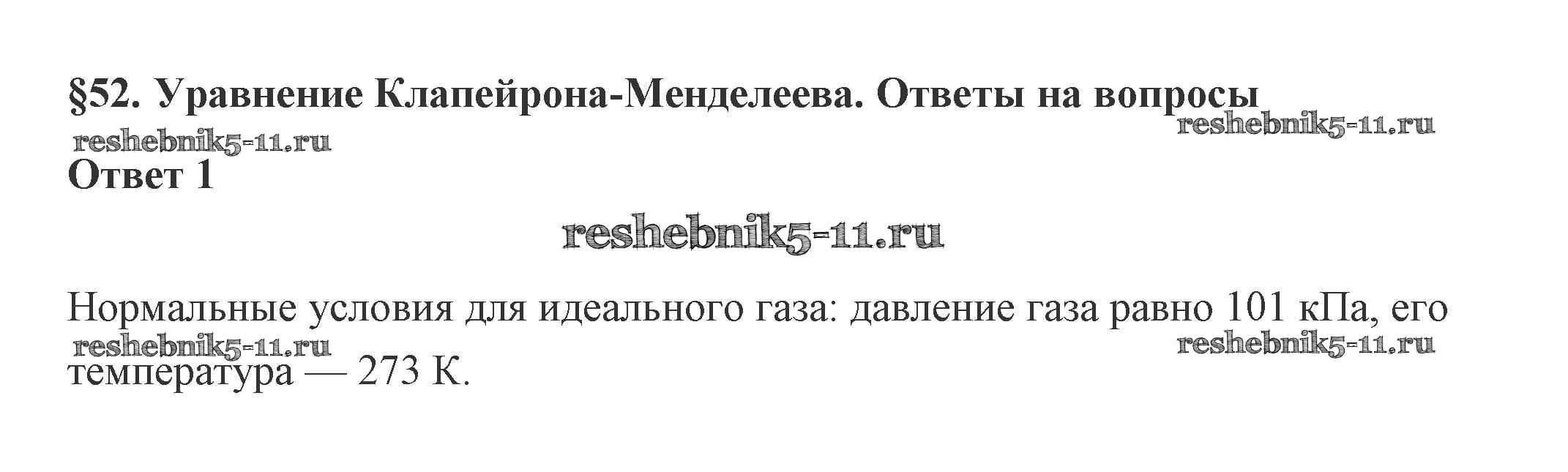 Готовая домашняя работа с ответами по Физике за 10 класс Касьянов Учебник Дрофа 2018 ФГОС - 52. Уравнение Клапейрона-Менделеева 1