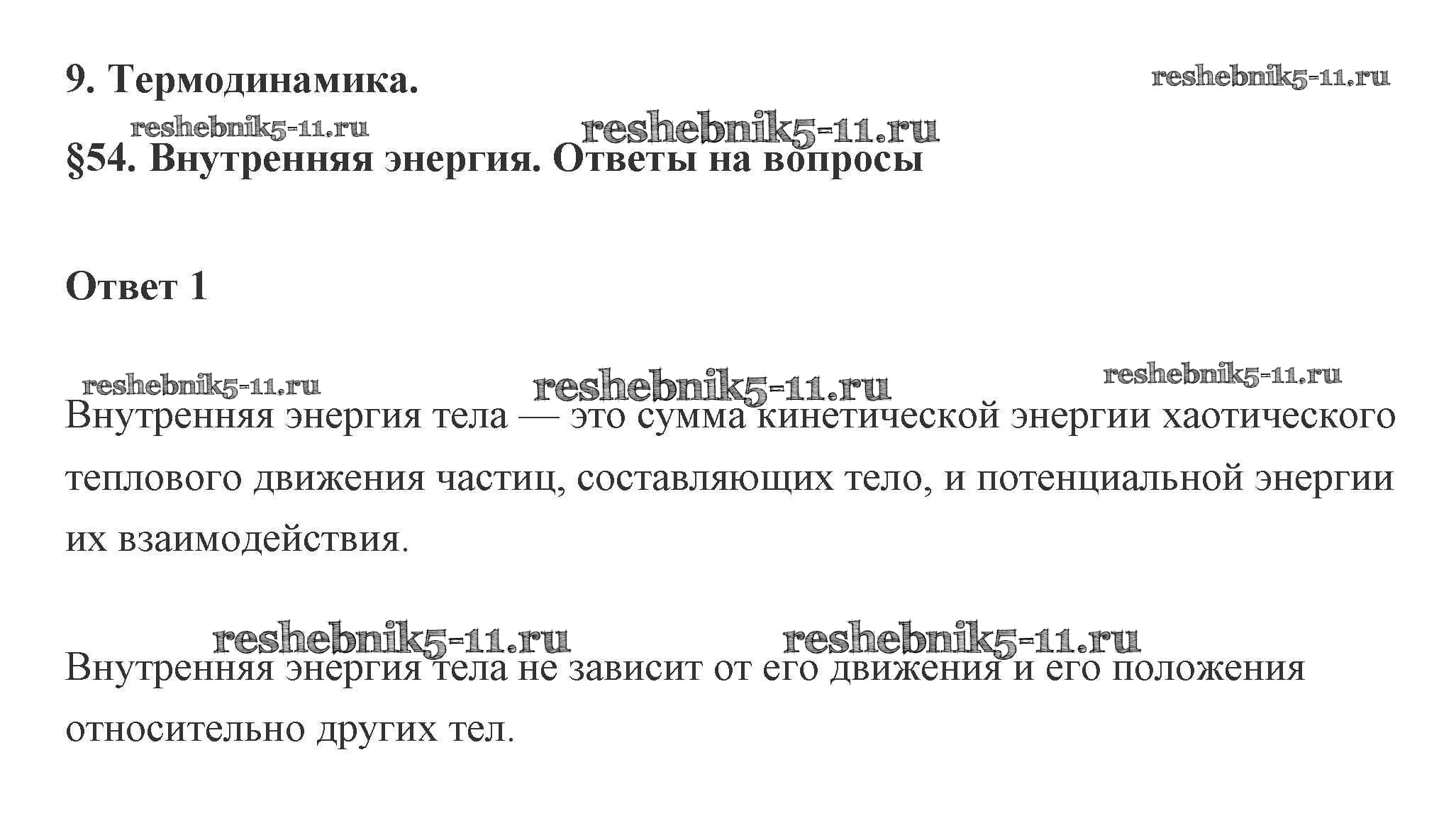 Готовая домашняя работа с ответами по Физике за 10 класс Касьянов Учебник Дрофа 2018 ФГОС - 54. Внутренняя энергия 1